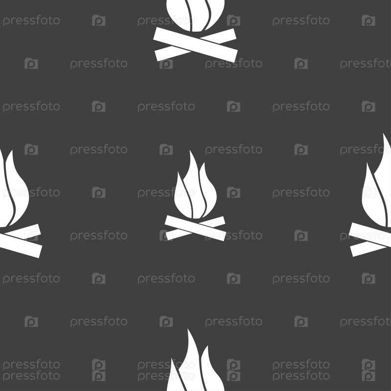 Огонь знак значок. Бесшовный узор на сером фоне. Вектор