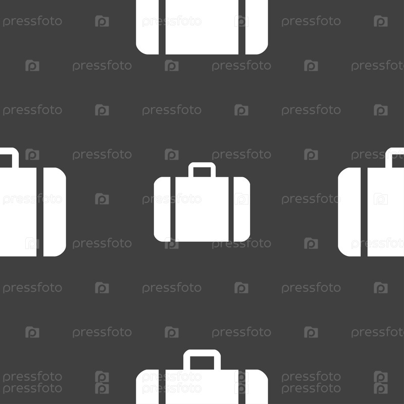 Чемодан значок знак. Бесшовный узор на сером фоне. Вектор