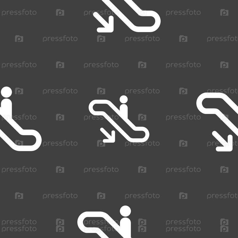Лифт, эскалатор, лестница значок знак. Бесшовный узор на сером фоне. Вектор
