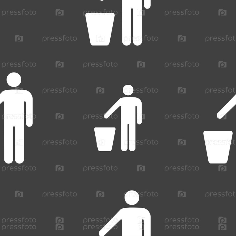 Выбросите мусор значок знак. Бесшовный узор на сером фоне. Вектор