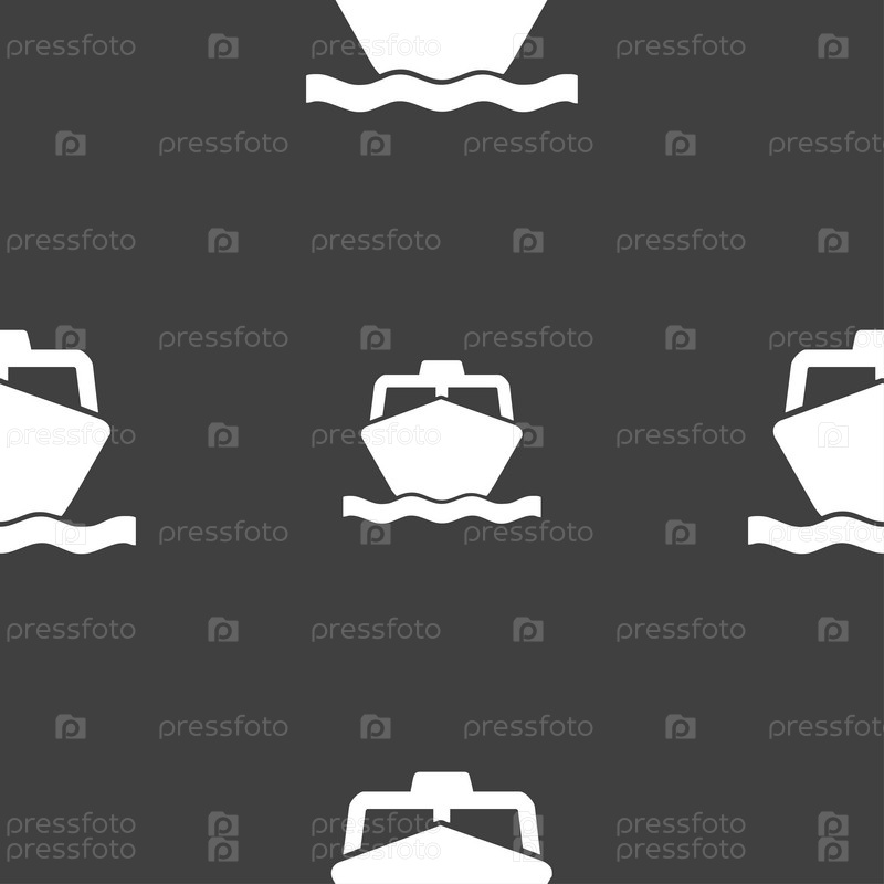 Лодка значок знак. Бесшовный узор на сером фоне. Вектор