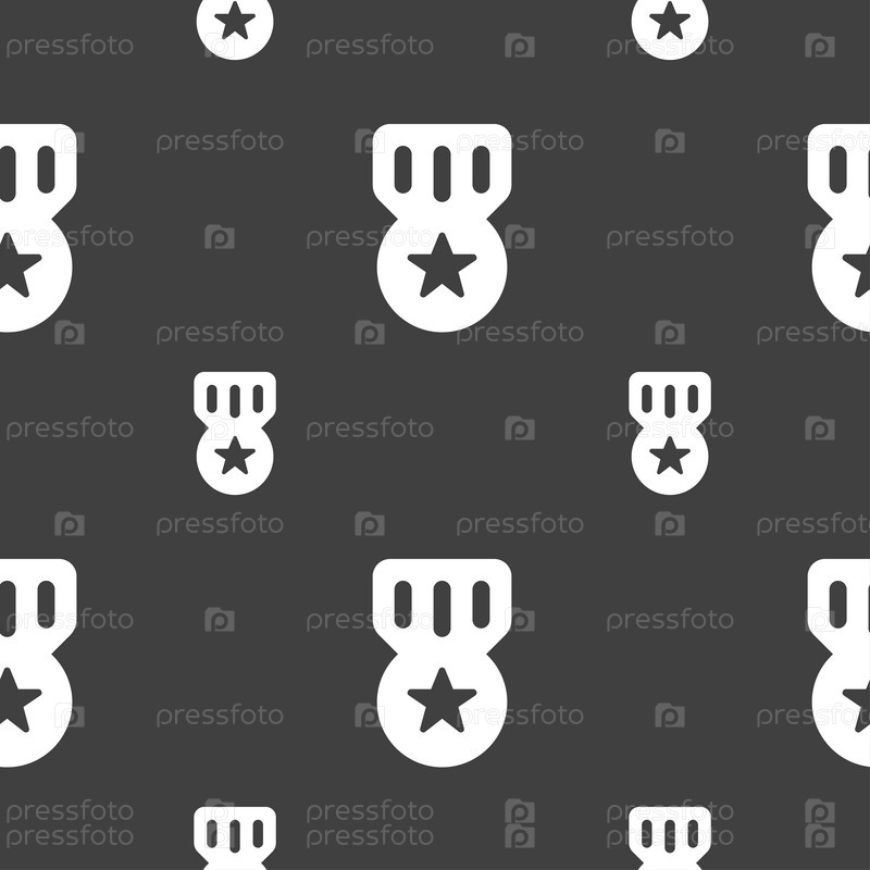 Премия, Медаль Почета значок знак. Бесшовный узор на сером фоне. Вектор