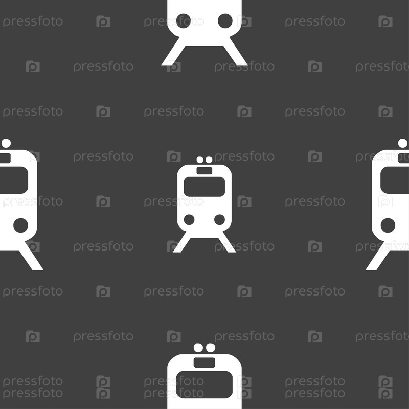 Поезд значок знак. Бесшовный узор на сером фоне. Вектор