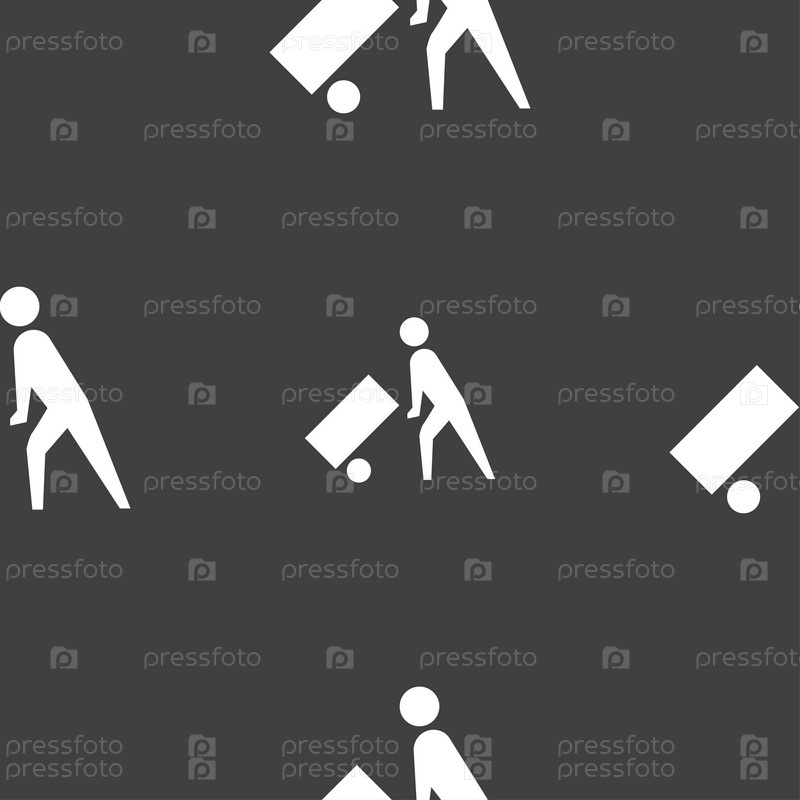 Погрузчик значок знак. Бесшовный узор на сером фоне. Вектор