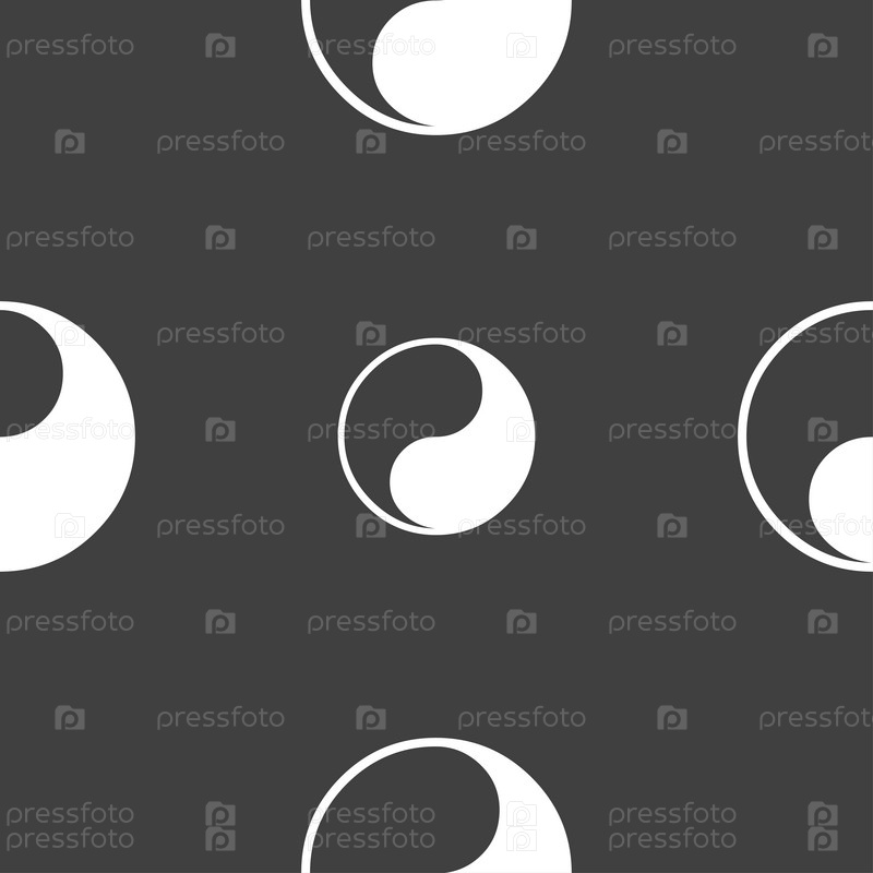 Инь Ян значок знак. Бесшовный узор на сером фоне. Вектор