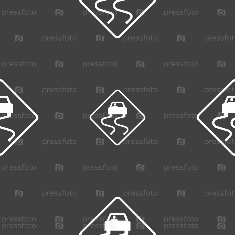 Дорожный знак скользкой значок. Бесшовный узор на сером фоне. Вектор