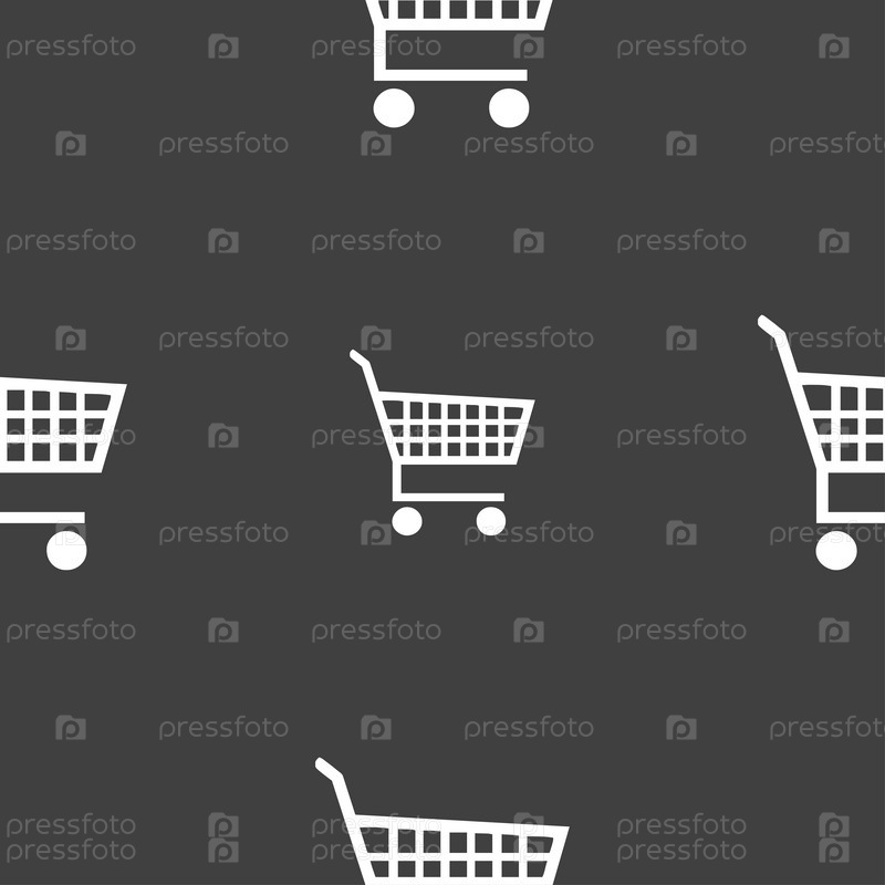 Торговый знак значок Корзина. Бесшовный узор на сером фоне. Вектор