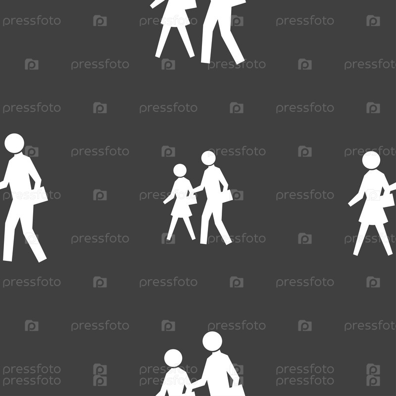 Значок знак пешеходного перехода. Бесшовный узор на сером фоне. Вектор