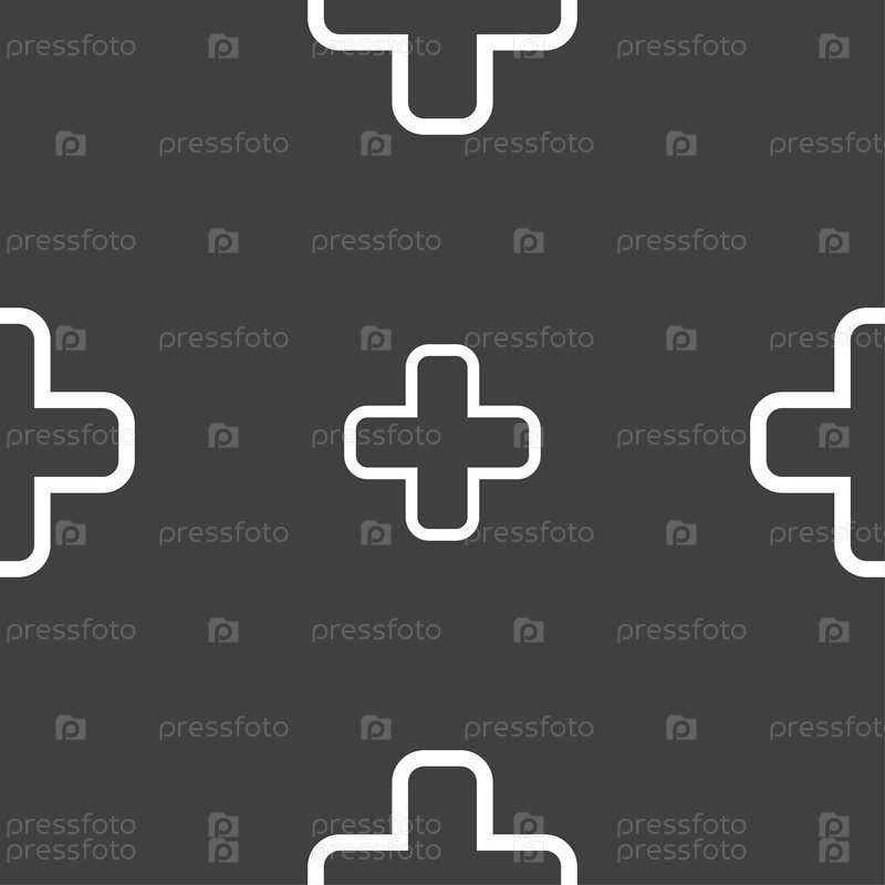 Плюс значок знак. Бесшовный узор на сером фоне. Вектор