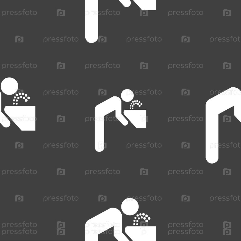 Питьевой фонтанчик значок знак. Бесшовный узор на сером фоне. Вектор