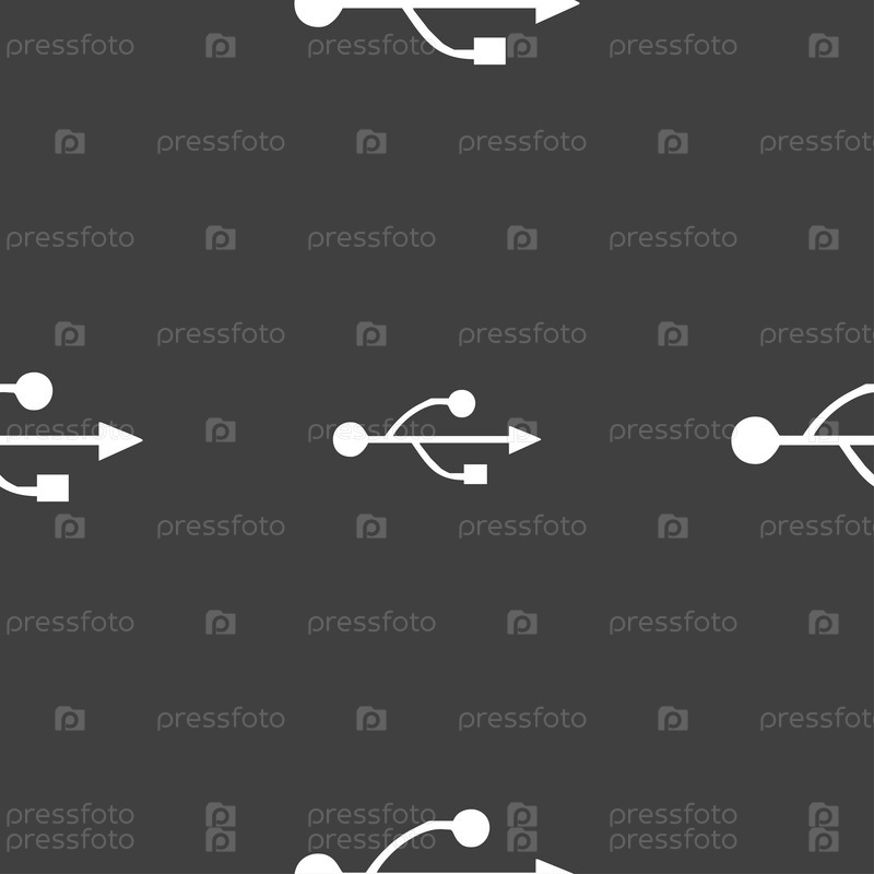 Изображение значка USB. Бесшовный рисунок на сером фоне. Вектор