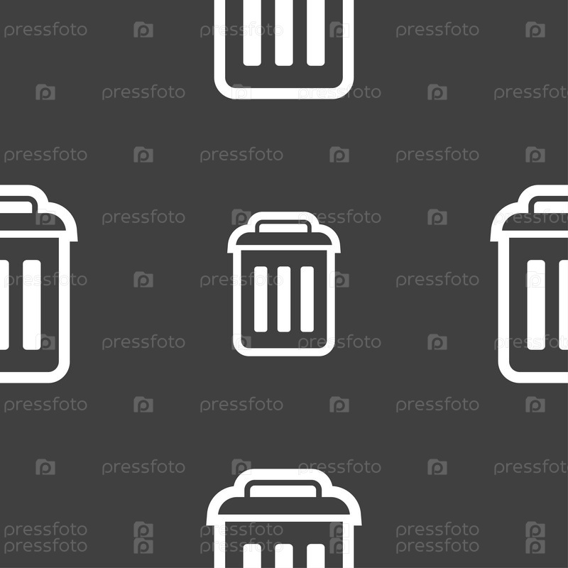 Знак значок корзины. Бесшовный узор на сером фоне. Вектор