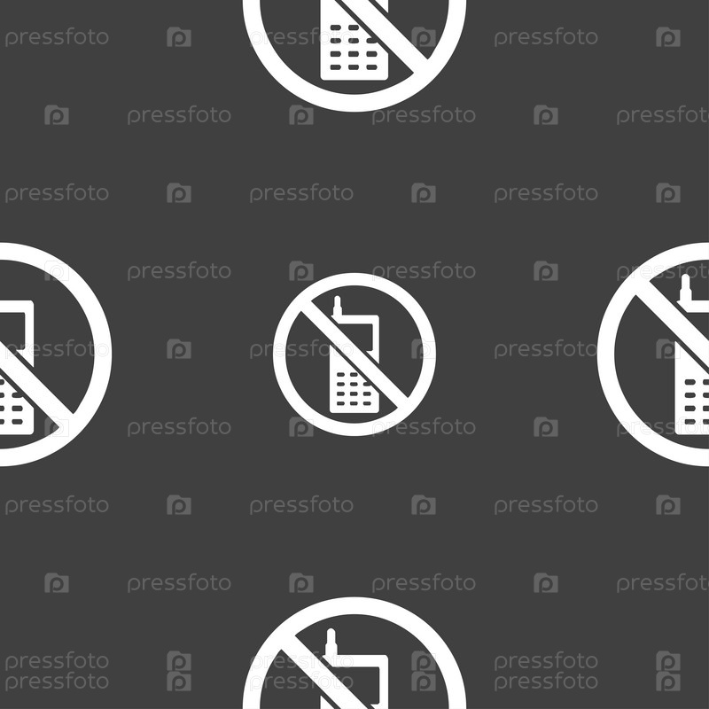 Мобильный телефон запрещается значок знак. Бесшовный узор на сером фоне. Вектор