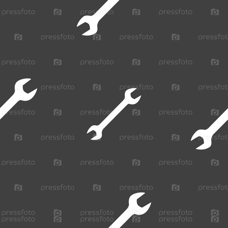 Гаечный ключ значок знак. Бесшовный узор на сером фоне. Вектор