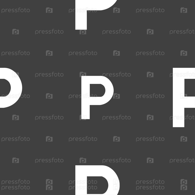 Парковка значок знак. Бесшовный узор на сером фоне. Вектор