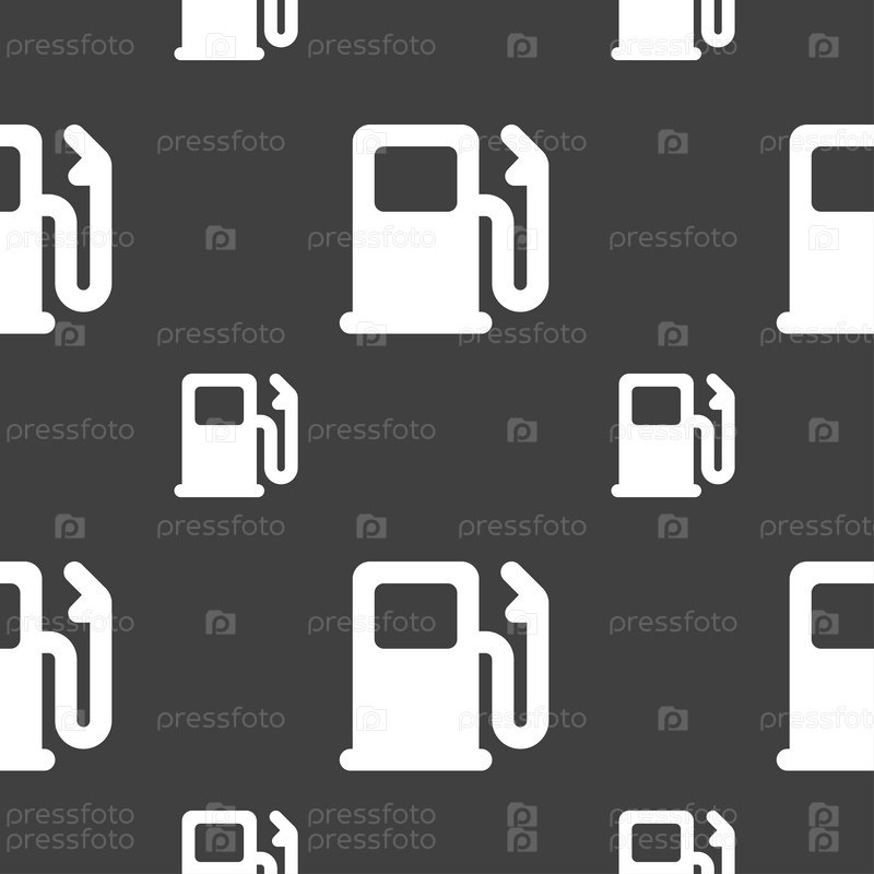 Бензин или газ станции, автомобилей топлива значок знак. Бесшовный узор на сером фоне. Вектор
