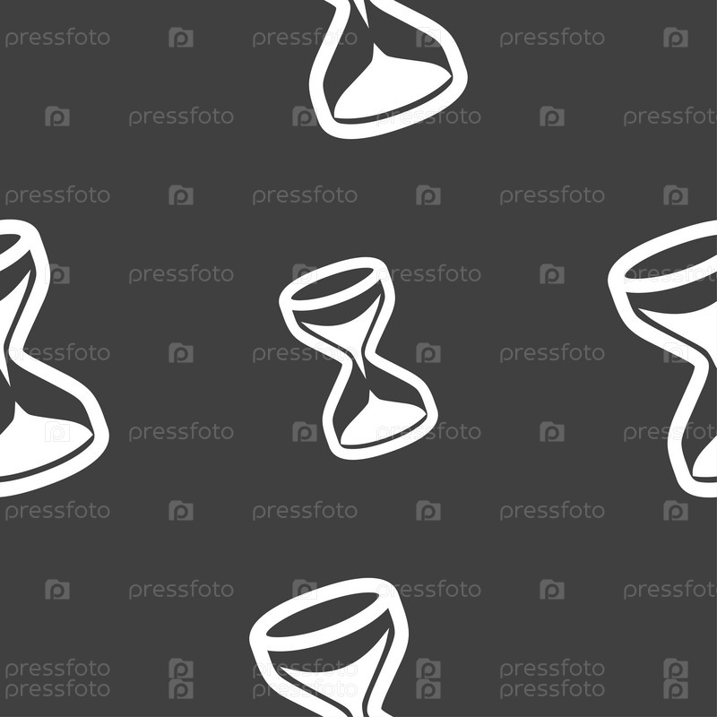Песочные часы значок знак. Бесшовный узор на сером фоне. Вектор