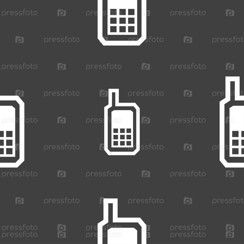 Мобильный телефон значок знак. Бесшовный узор на сером фоне. Вектор