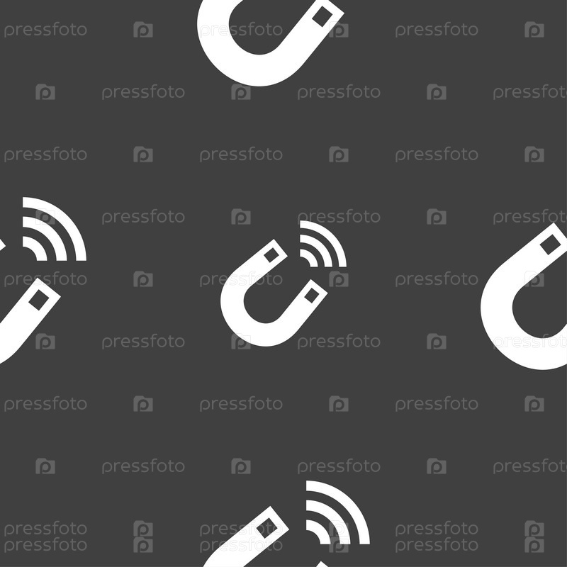 Магнит значок знак. Бесшовный узор на сером фоне. Вектор