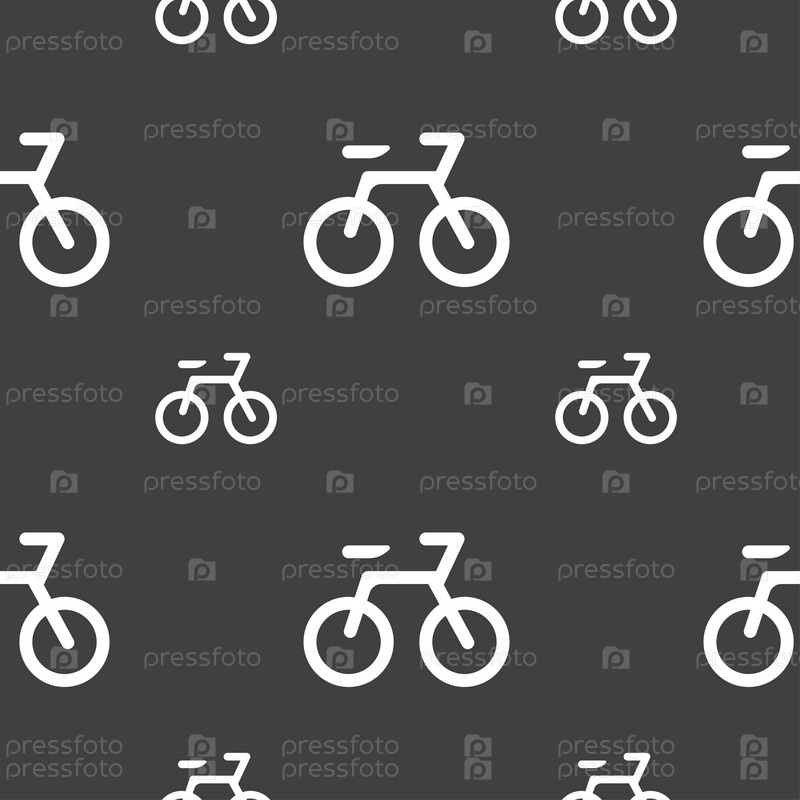 Велосипедов значок знак. Бесшовный узор на сером фоне. Вектор