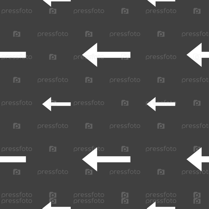 Стрелка влево, выход значок знак. Бесшовный узор на сером фоне. Вектор