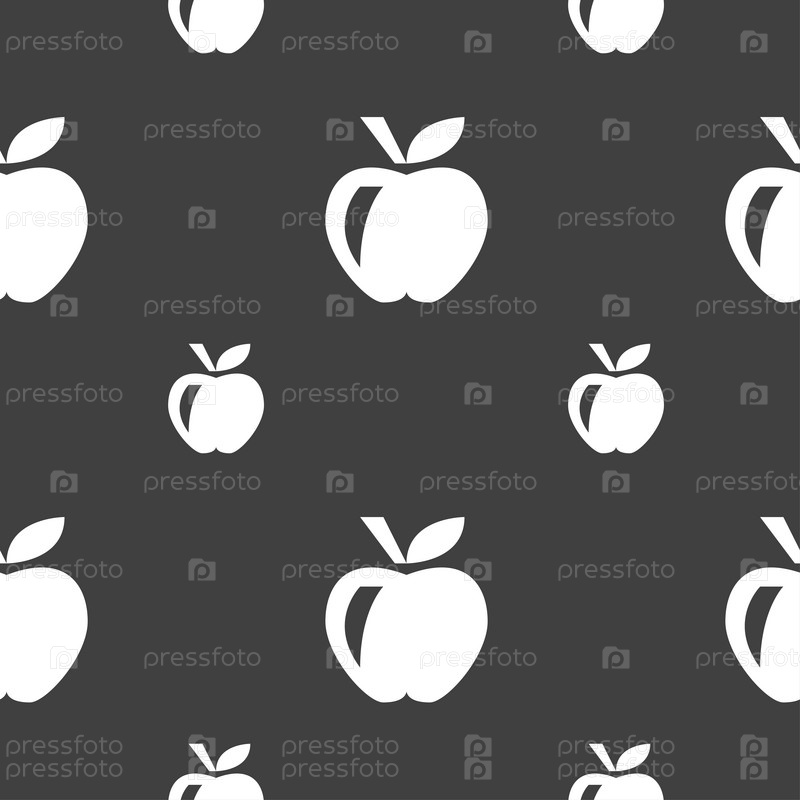 Apple значок символа. бесшовный узор на сером фоне. вектор