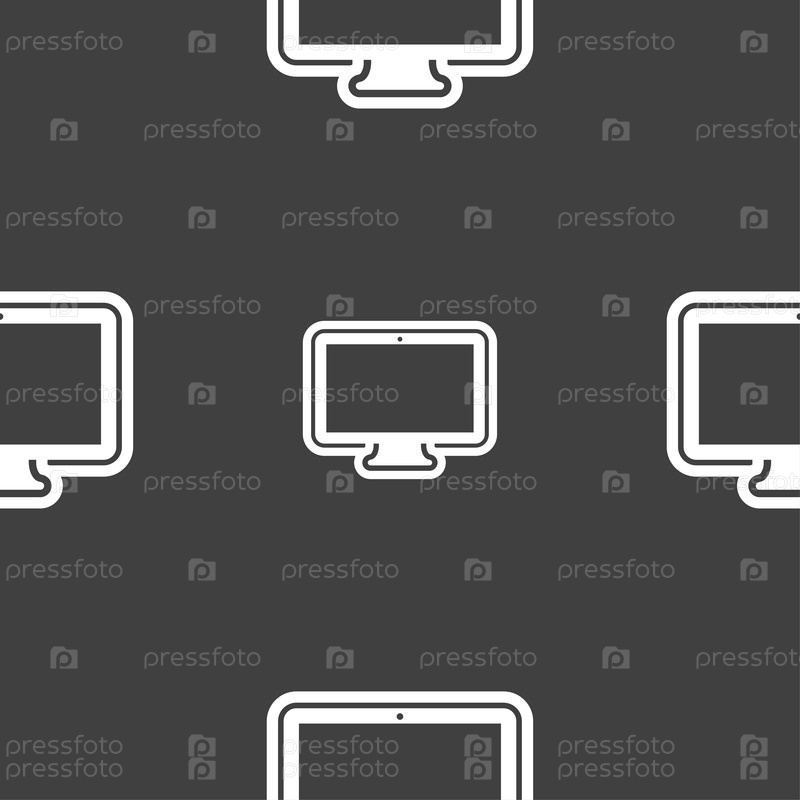 Монитор значок знак. Бесшовный узор на сером фоне. Вектор
