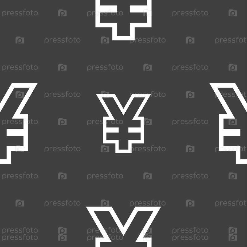 Знак значка JPY. Бесшовный узор на сером фоне. Вектор