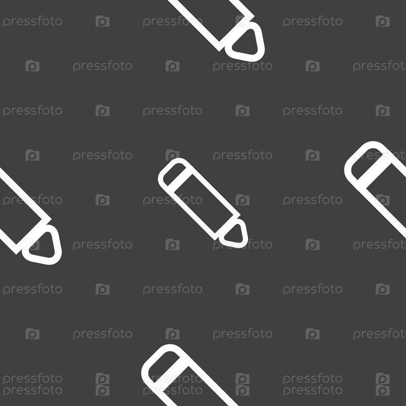Перо значок знак. Бесшовный узор на сером фоне. Вектор