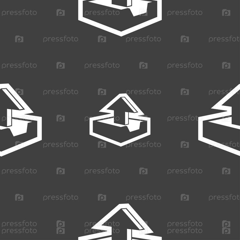 Загрузите значок знак. Бесшовный узор на сером фоне. Вектор