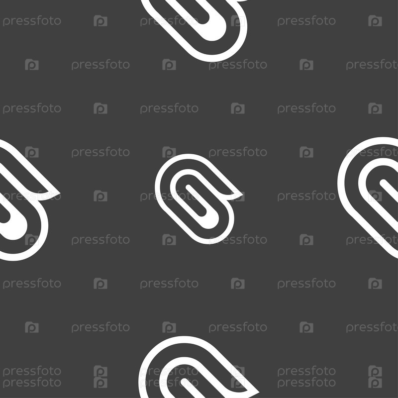 Знак значок скрепки. Бесшовный узор на сером фоне. Вектор
