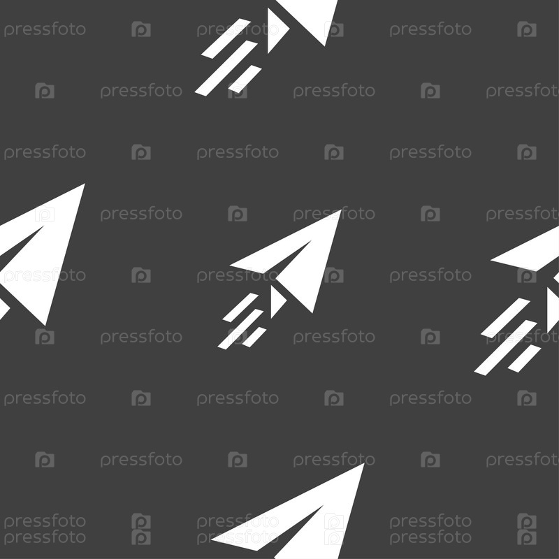 Бумага самолет значок знак. Бесшовный узор на сером фоне. Вектор