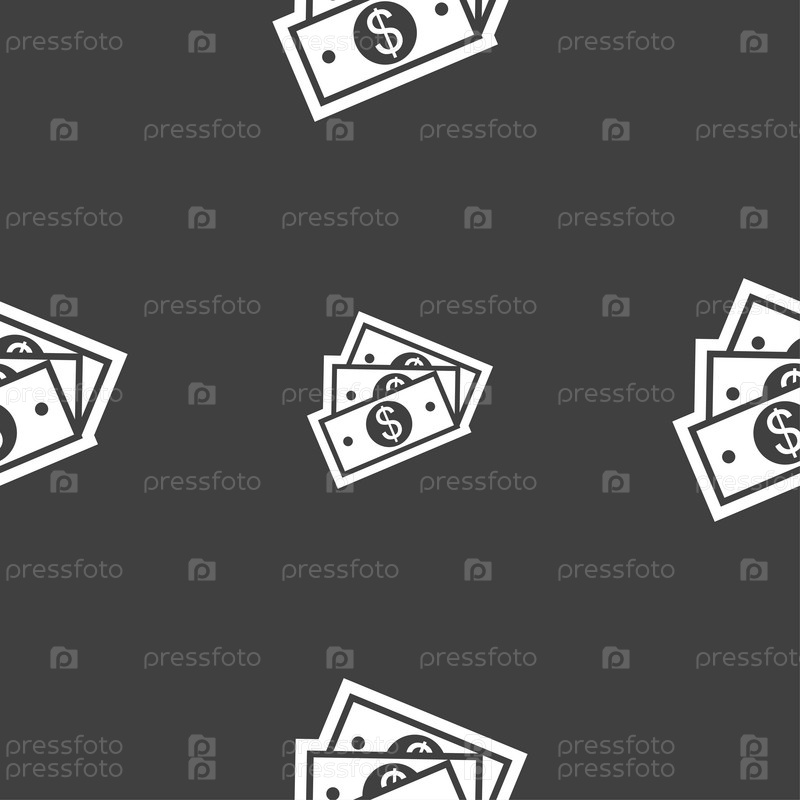 Значок знак доллара США. Бесшовный узор на сером фоне. Вектор