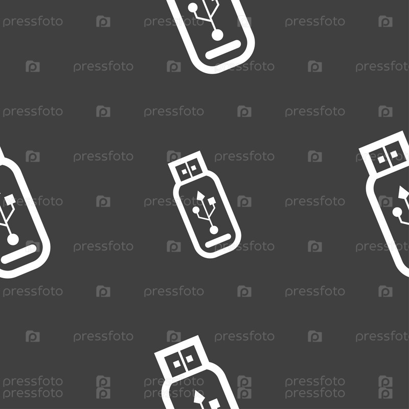 Знак значка USB-флэш диска. Бесшовный узор на сером фоне. Вектор