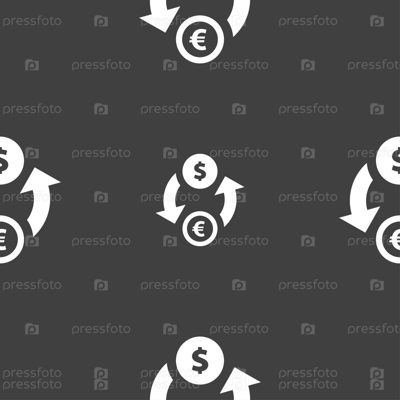 Значок знак Обмен валюты. Бесшовный узор на сером фоне. Вектор