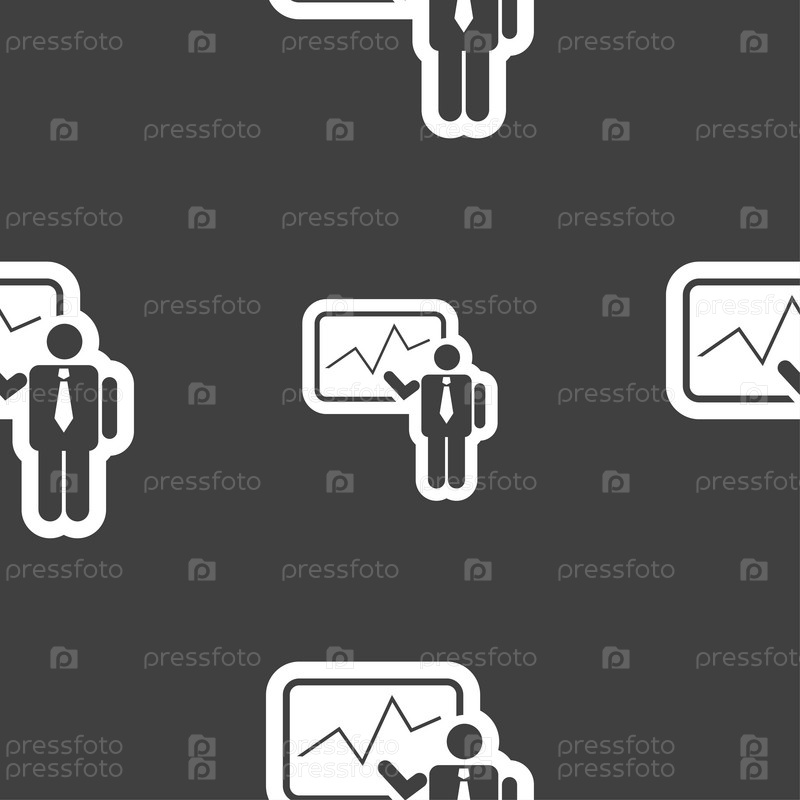 Бизнесмен, делая доклад значок знак. Бесшовный узор на сером фоне. Вектор