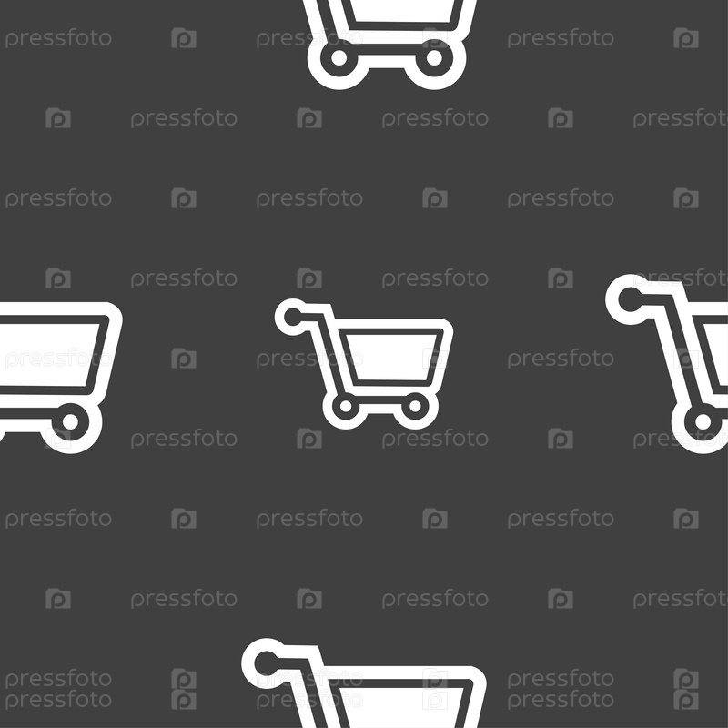 Торговый знак значок Корзина. Бесшовный узор на сером фоне. Вектор