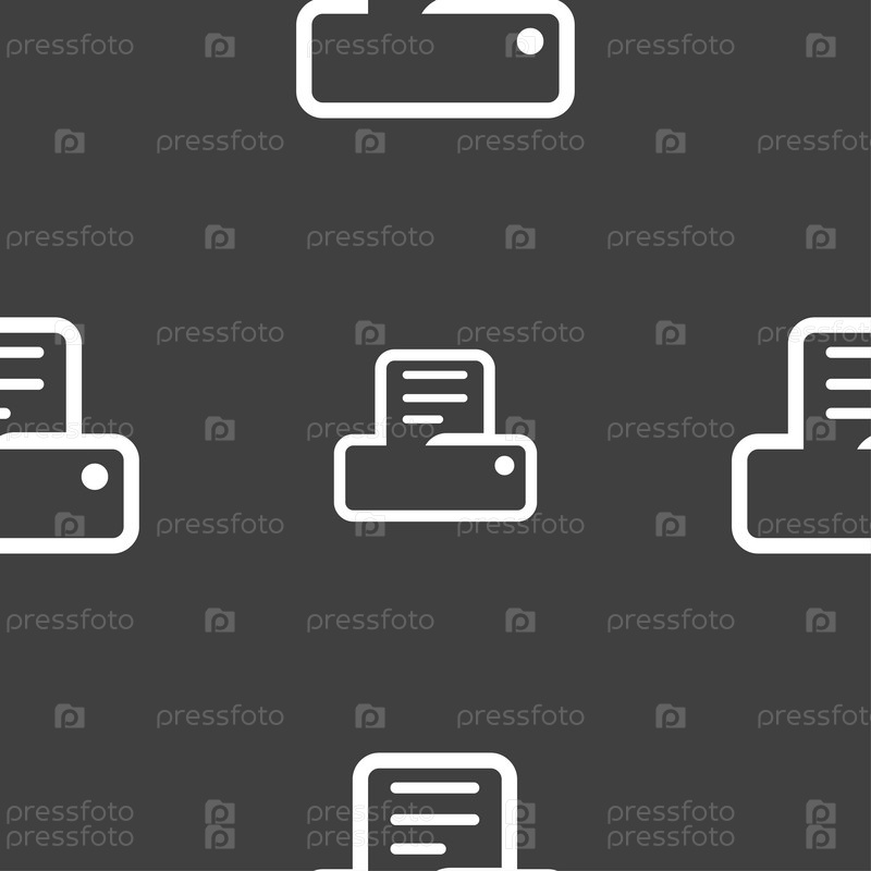 Печать значок знак. Бесшовный узор на сером фоне. Вектор