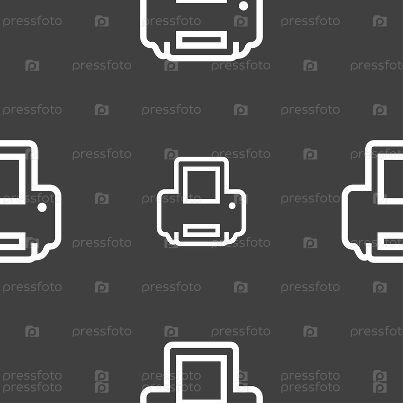 Печать значок знак. Бесшовный узор на сером фоне. Вектор