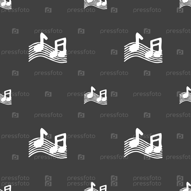 Ноты, музыка, рингтон значок знак. Бесшовный узор на сером фоне. Вектор