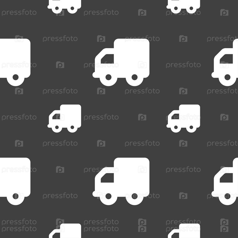 Грузовик доставки значок знак. Бесшовный узор на сером фоне. Вектор