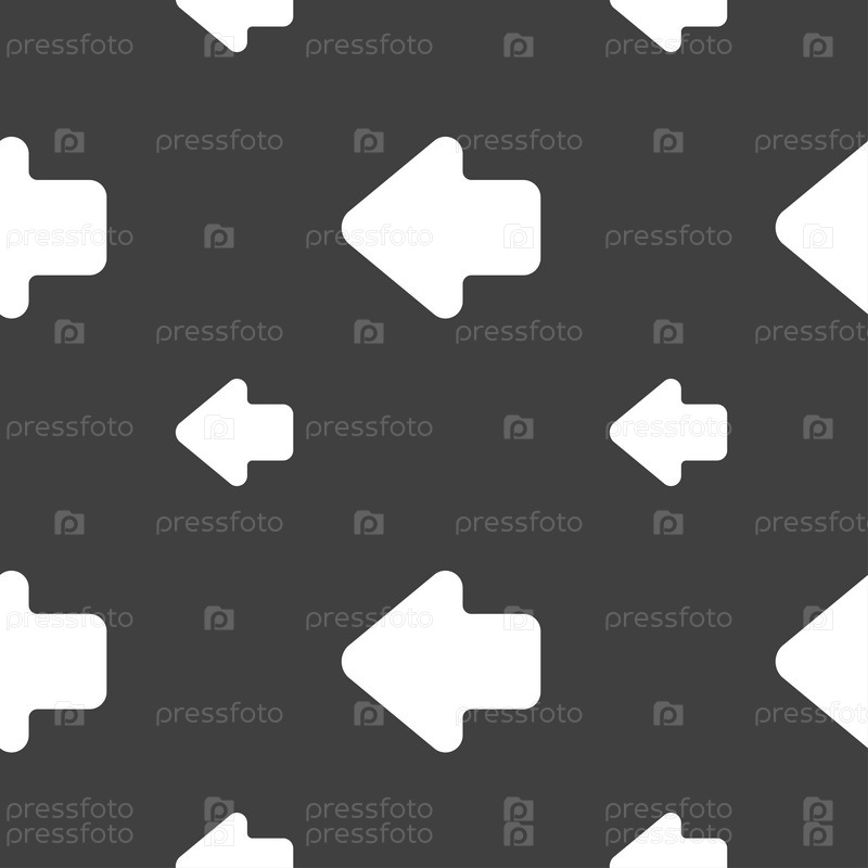 Стрелка влево, выход значок знак. Бесшовный узор на сером фоне. Вектор