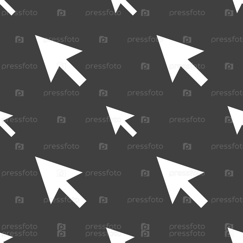 Курсор в виде стрелки, компьютерной мыши значок знак. Бесшовный узор на сером фоне. Вектор