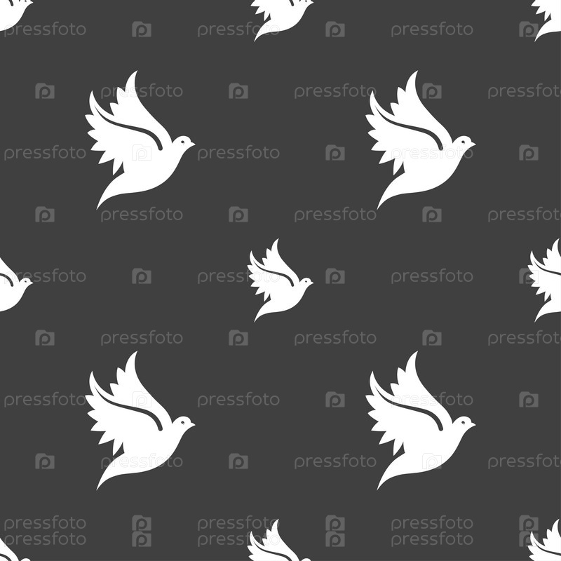 Голубь значок знак. Бесшовный узор на сером фоне. Вектор