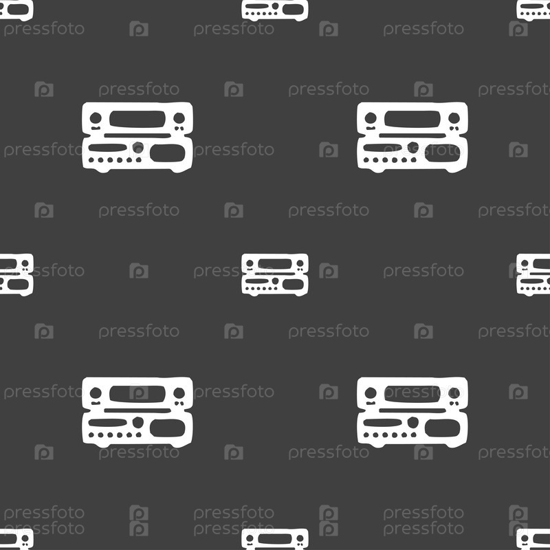 Радиоприемник, усилитель значок знак. Бесшовный узор на сером фоне. Вектор