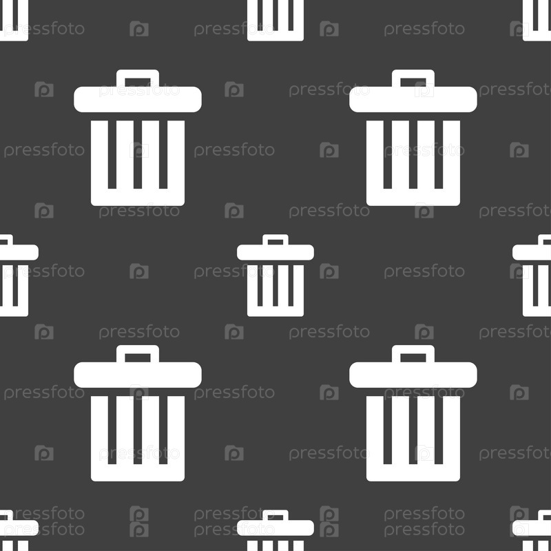 Рецикл бин значок знак. Бесшовный узор на сером фоне. Вектор