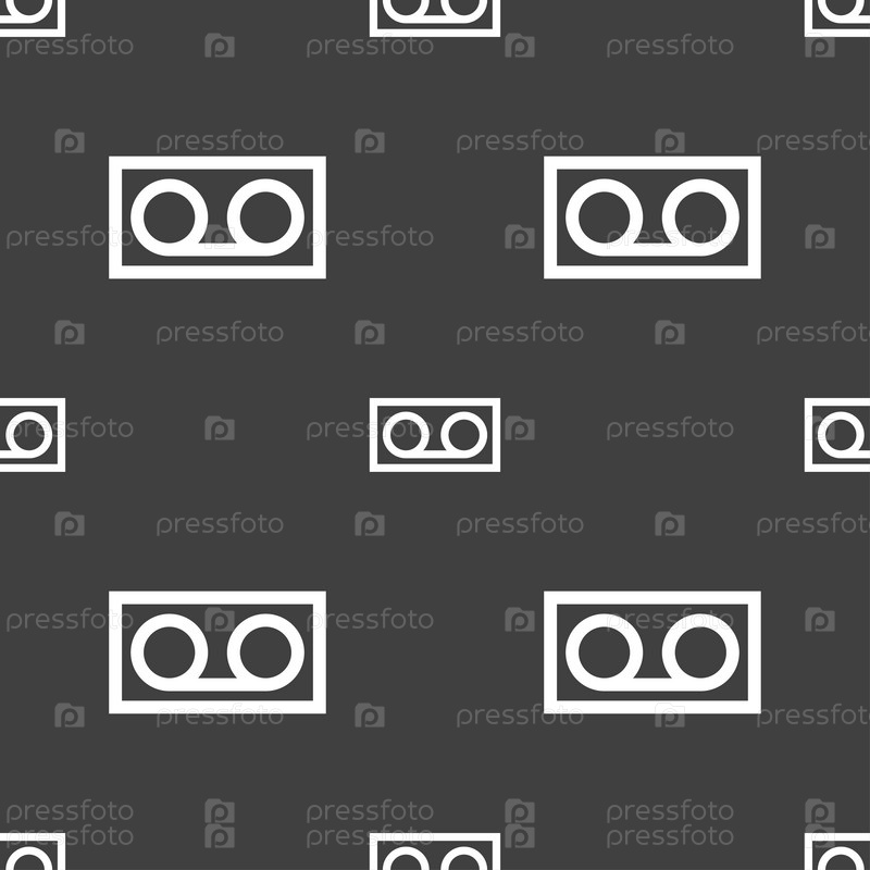 Аудио кассета значок знак. Бесшовный узор на сером фоне. Вектор