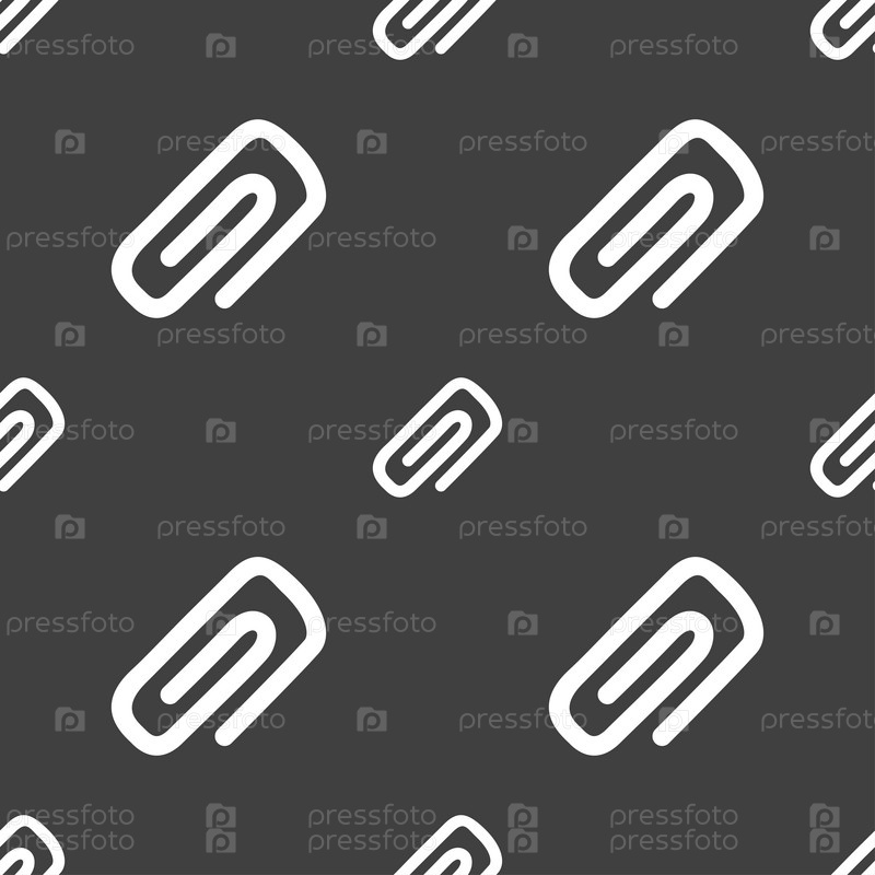 Клип на бумаге значок знак. Бесшовный узор на сером фоне. Вектор