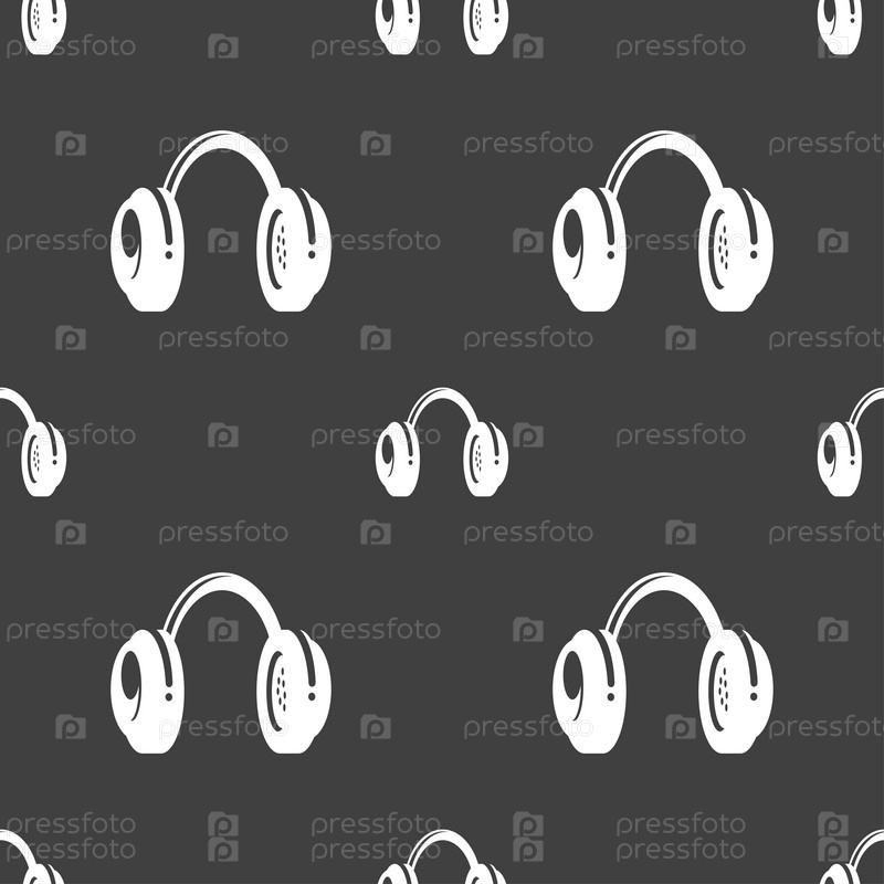 Гарнитуры значок знак. Бесшовный узор на сером фоне. Вектор