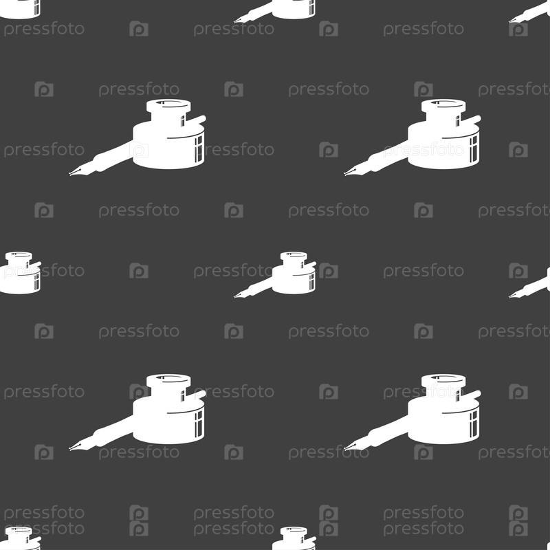Перо и чернила значок знак. Бесшовный узор на сером фоне. Вектор